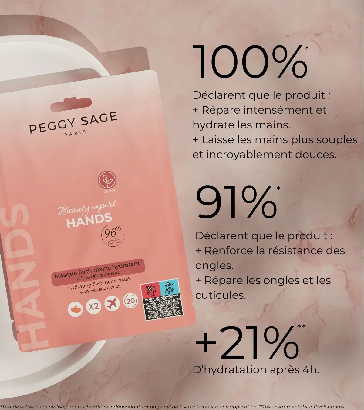 2. Pose du masque : Rabattre puis coller la languette autour du poignet pour fixer le gant. Laisser agir 20 minutes.